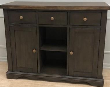This solid wood server features a medium grey rustic two tone finish and felt-lined drawers.Read More