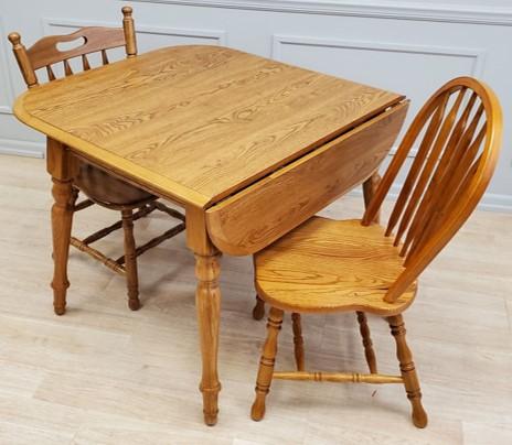 This laminate top table set features a drop leaf and solid oak chairs.Read More