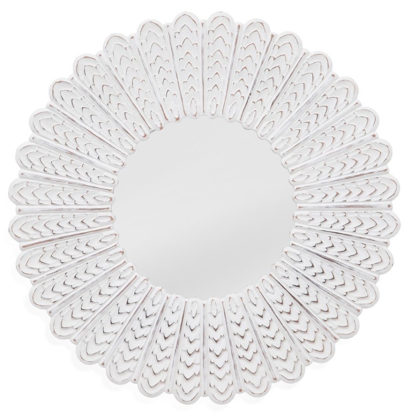 The Sofia Wall Mirror is a round mirror with a carved radiating frame. Two D ring attachment points for ease of access wall mounting is included to hang mirror. The hand crafted details produced by a skilled artist lends itself to a unique technique and will vary slightly.Read More