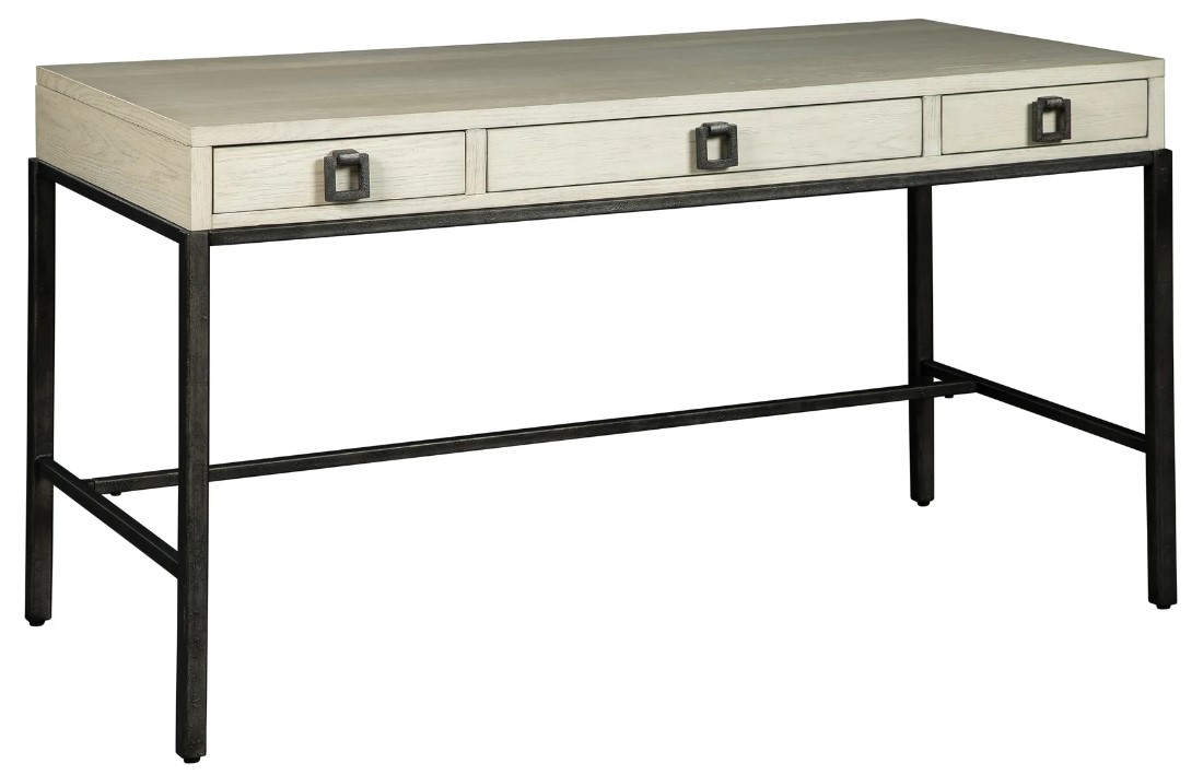 The Hekman writing desk as shown in beige wood finish and pewter metal legs is a high-quality and elegant desk that can enhance your home or office. It features drawers for your office supplies or necessities and pulls hardware for that aesthetic look.Read More