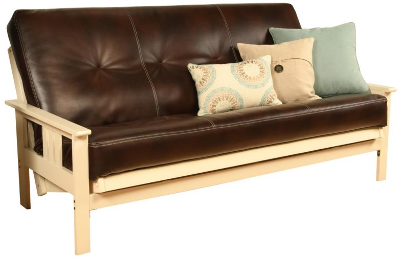 The mission style design on the arms of this solid wood futon frame cradle your mattress for sleeping comfort - pillows and sheets stay put when using it as a bed. This easy-to-adjust frame comes in an array of colors and the comfort of sofa height seating.Read More