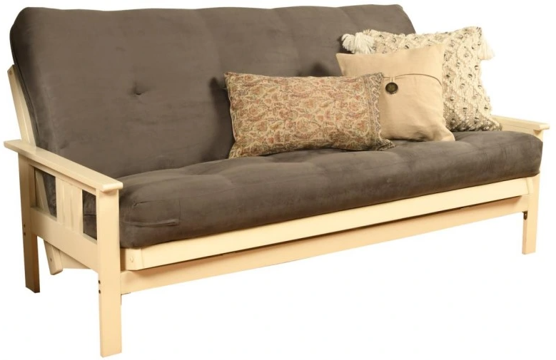 The mission style design on the arms of this solid wood futon frame cradle your mattress for sleeping comfort - pillows and sheets stay put when using it as a bed. This easy-to-adjust frame comes in an array of colors and the comfort of sofa height seating.Read More