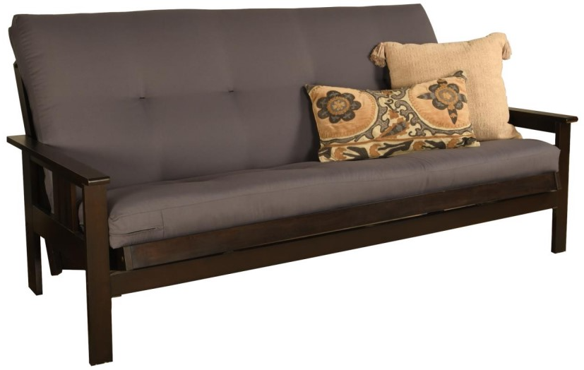 The mission style design on the arms of this solid wood futon frame cradle your mattress for sleeping comfort - pillows and sheets stay put when using it as a bed. This easy-to-adjust frame comes in an array of colors and the comfort of sofa height seating.Read More