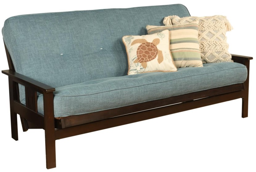 The mission style design on the arms of this solid wood futon frame cradle your mattress for sleeping comfort - pillows and sheets stay put when using it as a bed. This easy-to-adjust frame comes in an array of colors and the comfort of sofa height seating.Read More