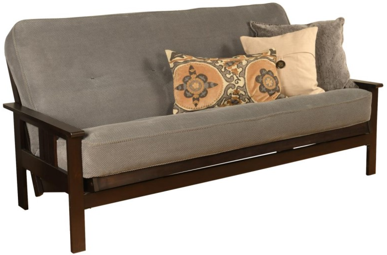 The mission style design on the arms of this solid wood futon frame cradle your mattress for sleeping comfort - pillows and sheets stay put when using it as a bed. This easy-to-adjust frame comes in an array of colors and the comfort of sofa height seating.Read More