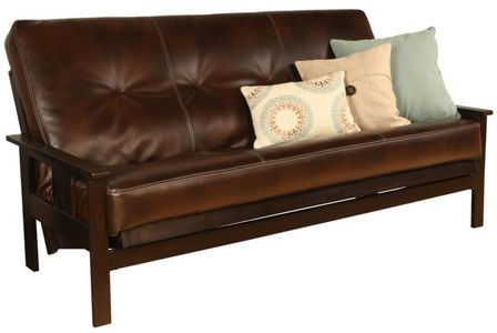 The mission style design on the arms of this solid wood futon frame cradle your mattress for sleeping comfort - pillows and sheets stay put when using it as a bed. This easy-to-adjust frame comes in an array of colors and the comfort of sofa height seating.Read More
