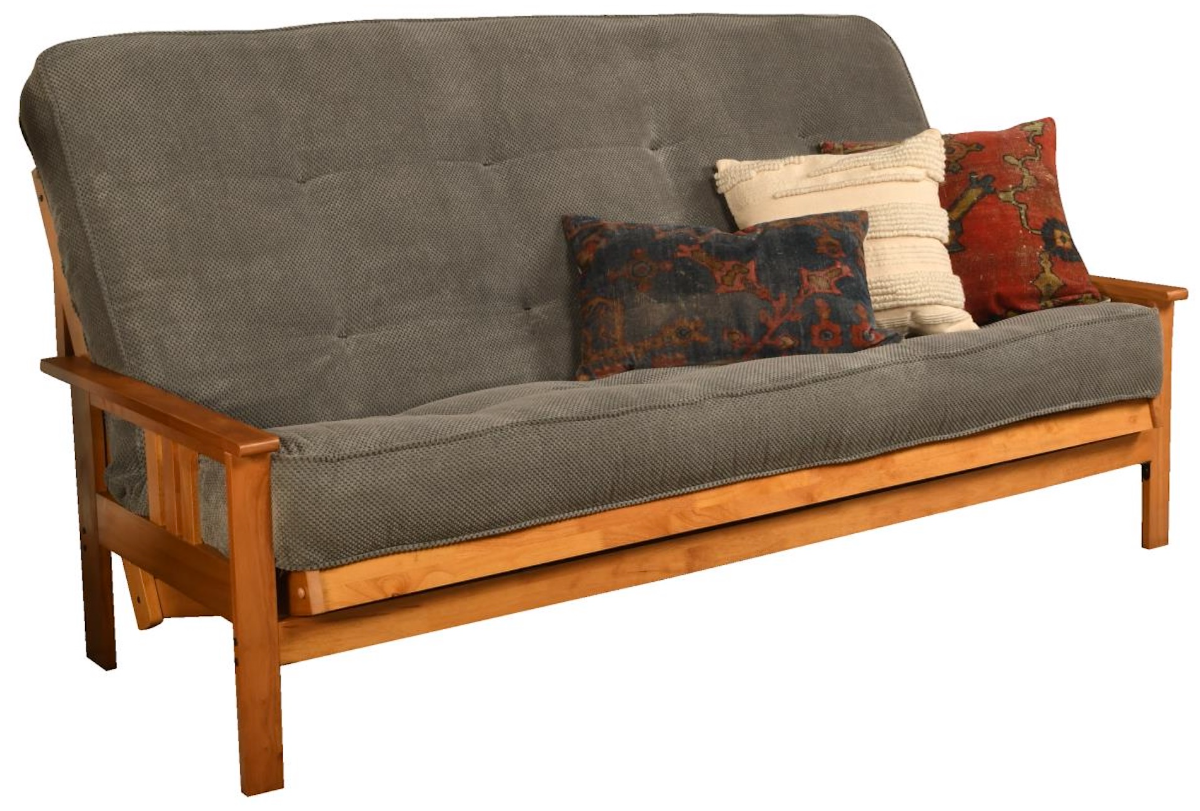 The Kodiak Furniture Monterey Butternut/Marmont Thunder Queen Futon with Mattress combines style and comfort, featuring a durable wooden frame and a plush mattress. Its elegant design enhances any space, making it perfect for living rooms or guest rooms. Versatile and functional, it easily converts from a sofa to a bed.Read More