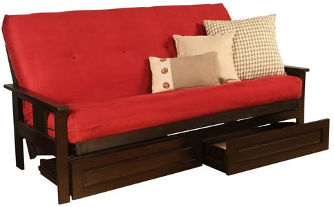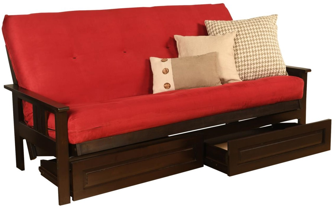 The mission style design on the arms of this solid wood futon frame cradle your mattress for sleeping comfort pillows and sheets stay put when using it as a bed. This easy-to-adjust frame comes in an array of colors and the comfort of sofa height seating.Read More