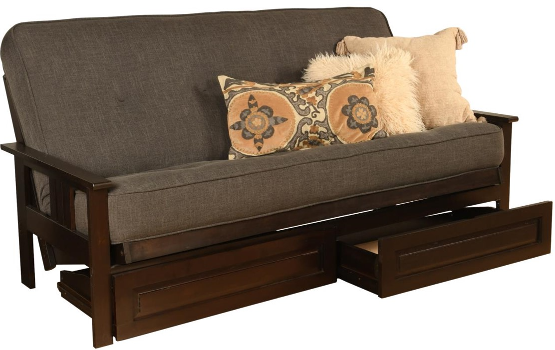 The mission style design on the arms of this solid wood futon frame cradle your mattress for sleeping comfort pillows and sheets stay put when using it as a bed. This easy-to-adjust frame comes in an array of colors and the comfort of sofa height seating.Read More
