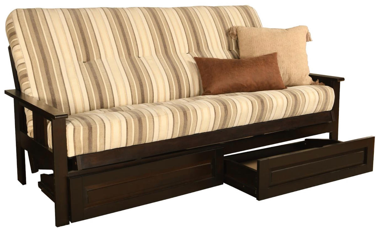 The mission style design on the arms of this solid wood futon frame cradle your mattress for sleeping comfort -- pillows and sheets stay put when using it as a bed. This easy-to-adjust frame comes in an array of colors and the comfort of sofa height seating.Read More