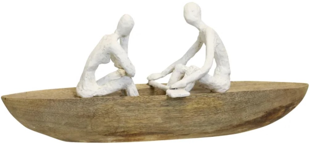 Celebrate togetherness and adventure with the Canoe Couple Sculpture. Featuring resin figures in soft brown and white tones atop a solid mango wood base, this sculptural accent brings warmth, storytelling charm, and natural texture to shelves, consoles, or tabletops.Read More