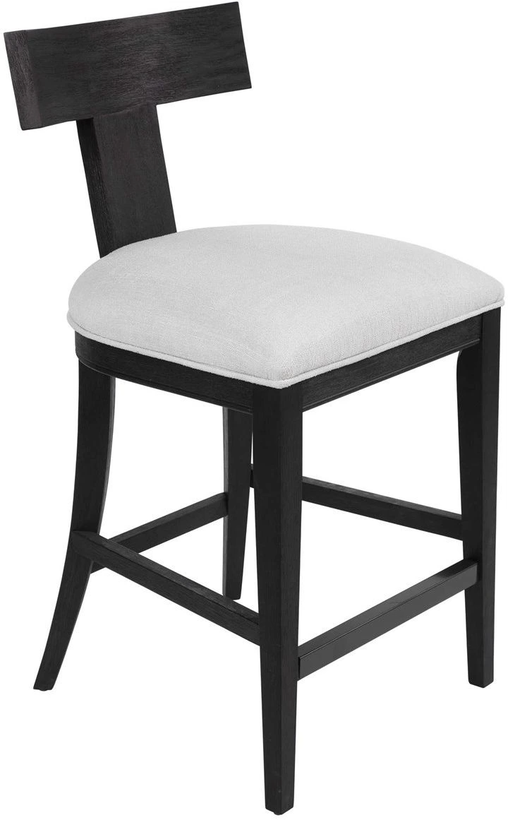 This modern take on a klismos design features a curved rubber wood frame that has been wire brushed and rubbed in a charcoal black stain, paired with a white slubbed performance fabric cushion.Read More
